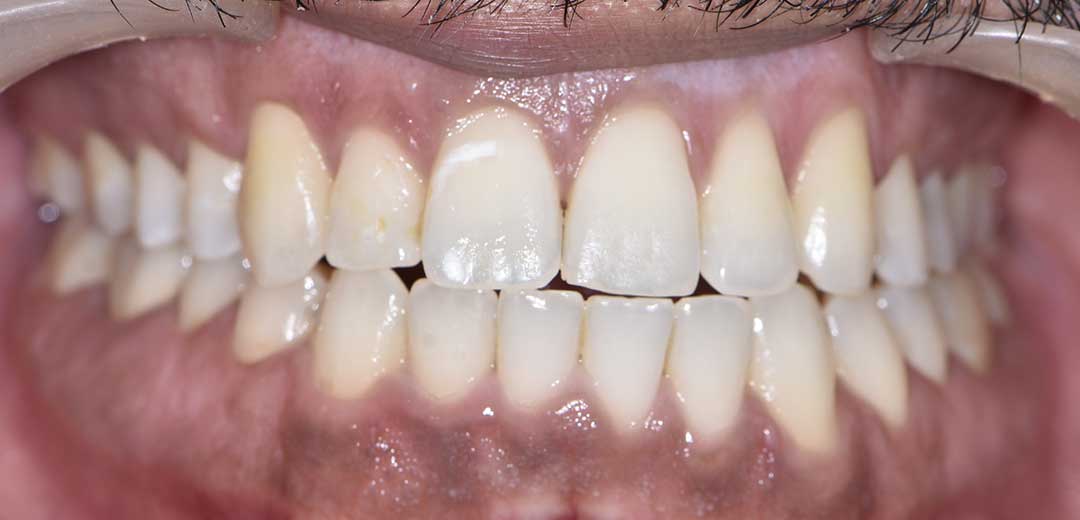Close-up photo of a patient’s mouth before starting treatment with dental braces at Harmony Medical Center.